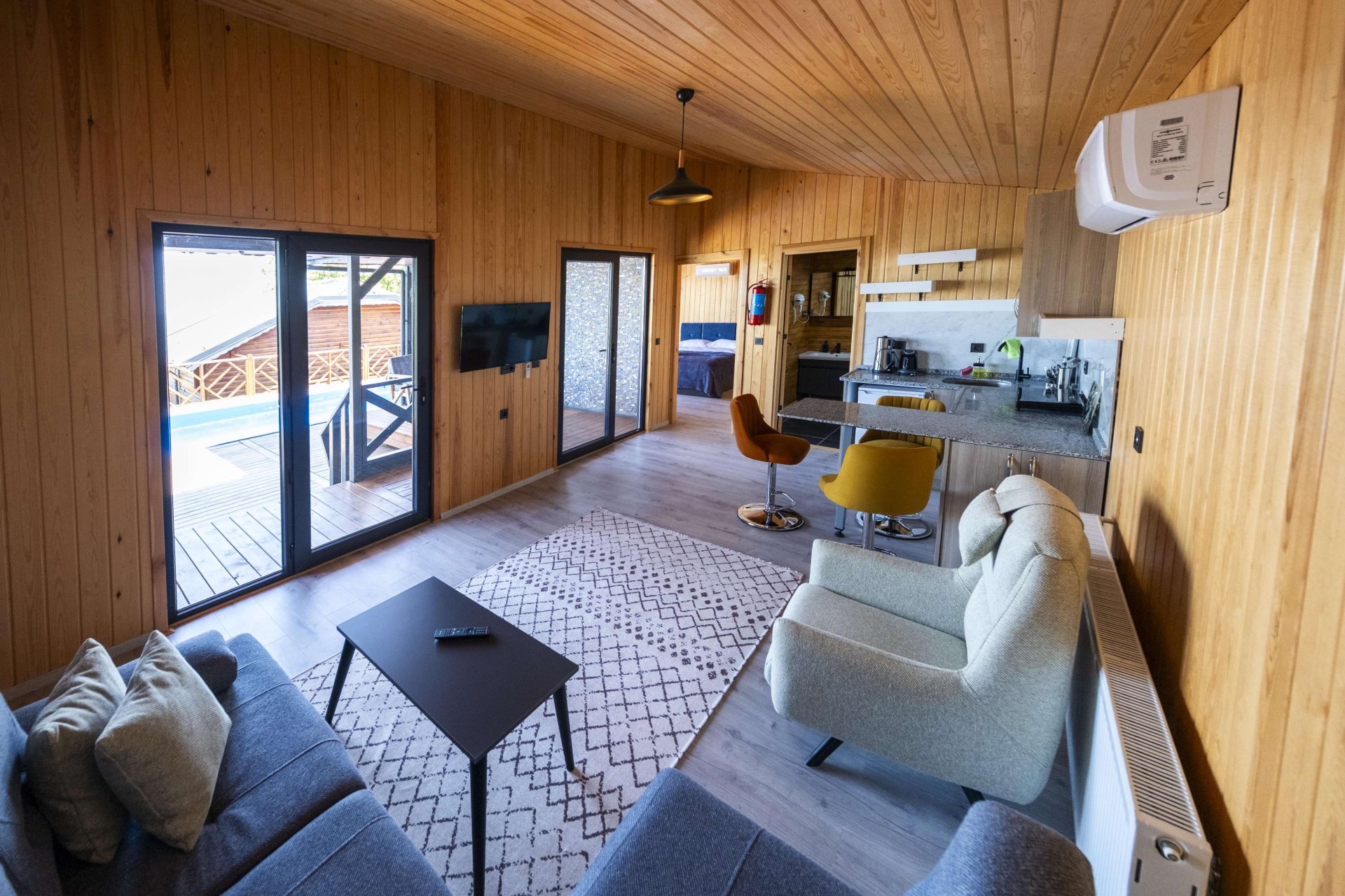 Our bungalow can accommodate up to 5 guests. With a spacious living area, thoughtfully designed bedroom, modern kitchen, and comfortable bathroom, every detail you might need has been considered.
